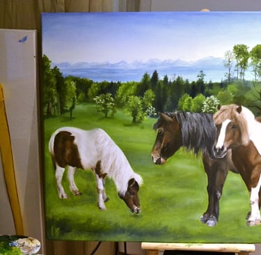 Ponys auf Schweizer Maifeldern - 60 x 80 cm Leinwandgemälde