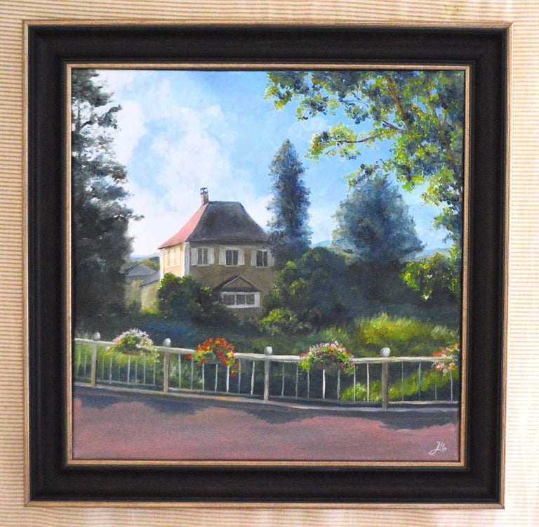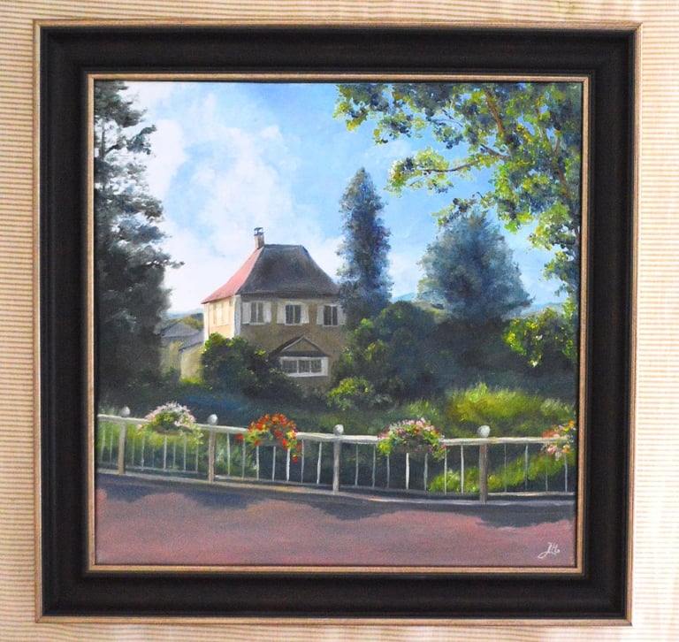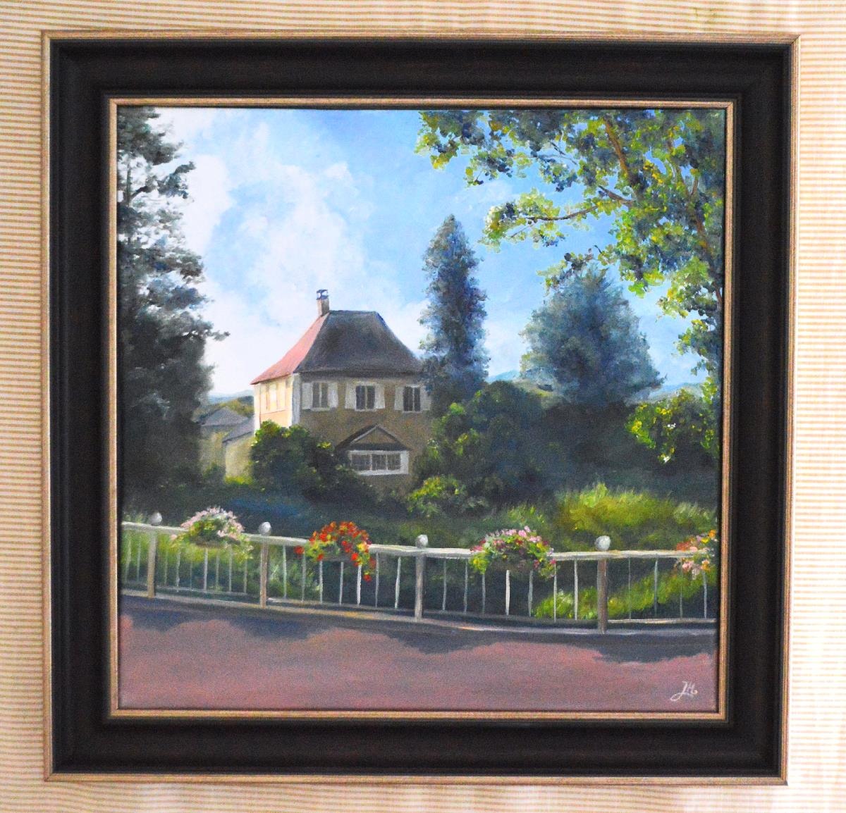 Based on a real photo I took while on a family road trip in Switzerland, there were nearly no changes except for adding ball tops on the fence and changing the flower colors. I really had the joy to work on this painting,