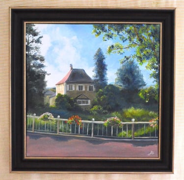 Villa by the Roadside - 39 x 39 cm Canvas Painting
